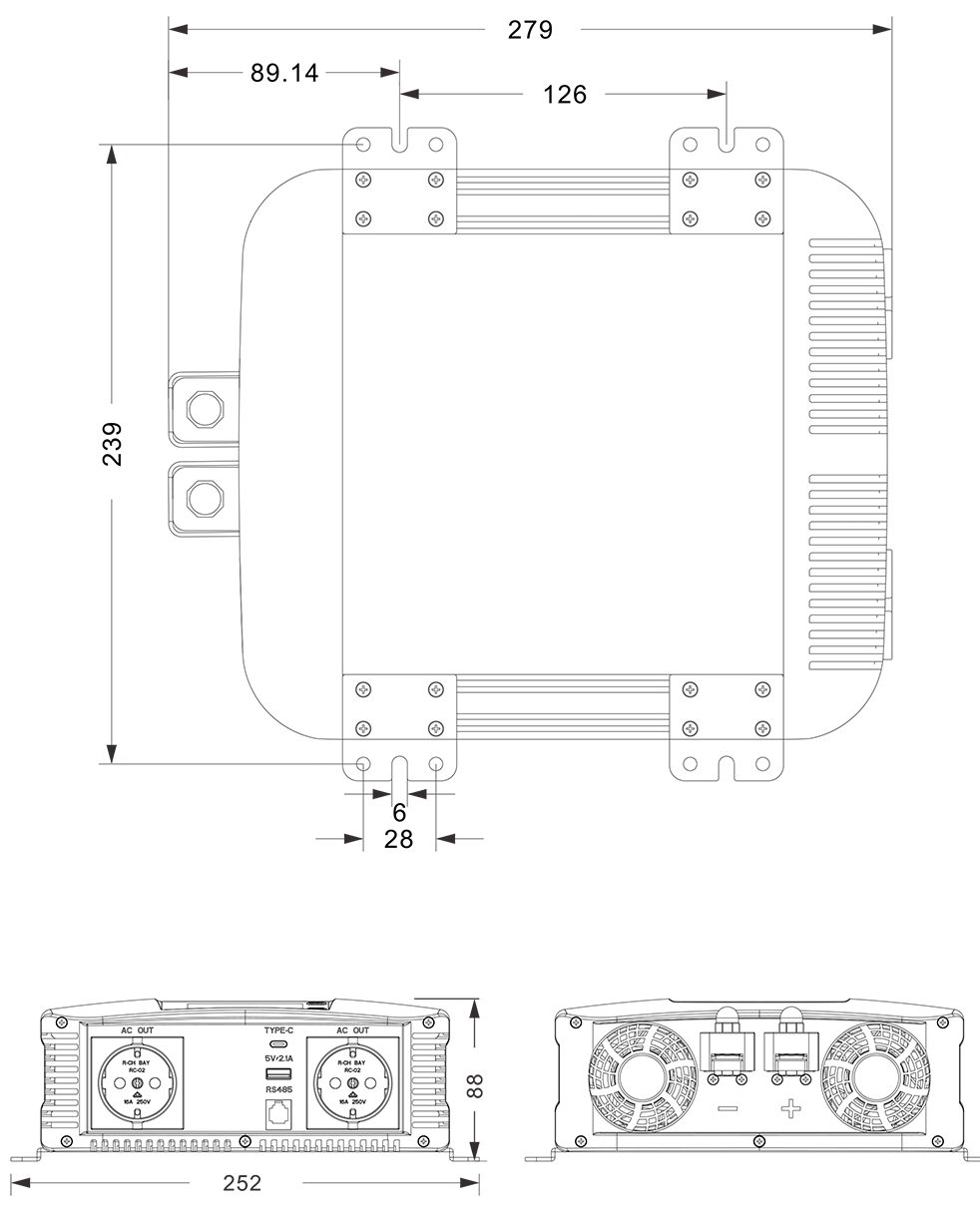 output ကိုလှိုင်းပုံစံ စင်ကြယ်သော sine လှိုင်း (THD <5% @ ပုံမှန်ဝန်)