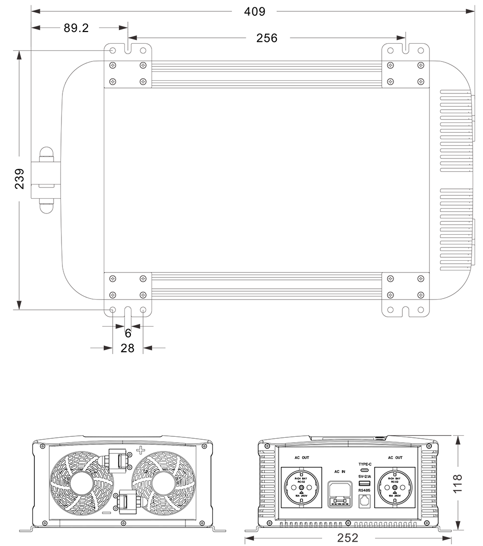 မှတ်ချက် 1. Voltage 12.8V / 25.6V / 50.4V ရှိ input voltage ဖြင့်စစ်ဆေးပါ။ 2. Parameters များကိုအဆင့်သတ်မှတ်ထားသည့်ဝန်ဖြင့်တိုင်းတာသည်။