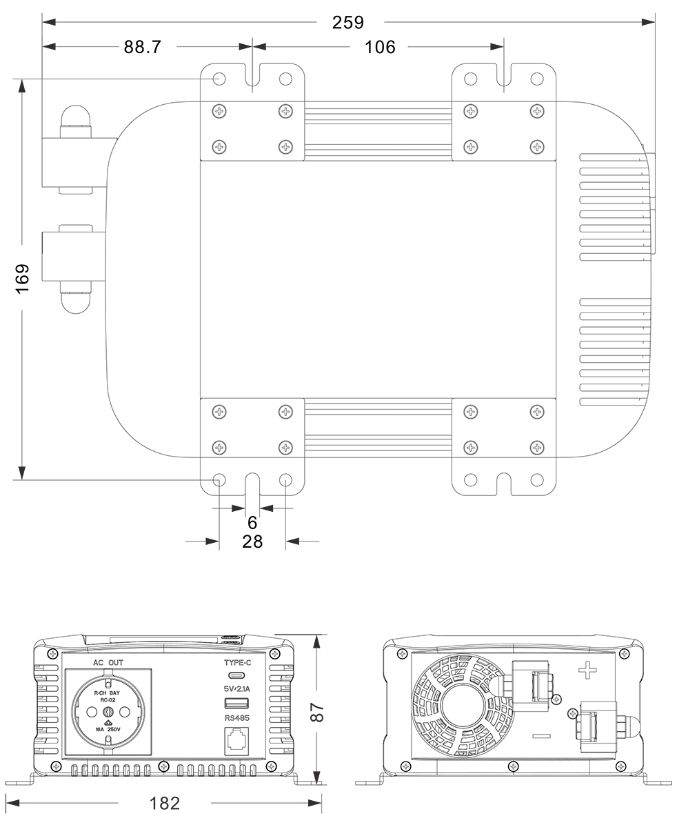 အခြားသူများ အရွယ်အစား (w × H × d) 259 × 182 × 87 မီလီမီတာ