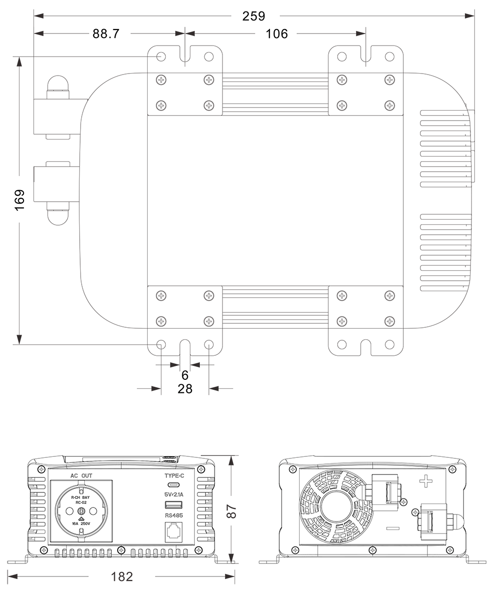 အခြားသူများ အရွယ်အစား (w × H × d) 259 × 182 × 87 မီလီမီတာ