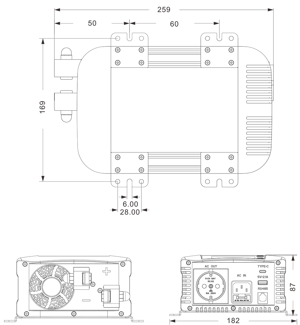မှတ်ချက် 1. Voltage 12.8V / 25.6V / 50.4V ရှိ input voltage ဖြင့်စစ်ဆေးပါ။ 2. Parameters များကိုအဆင့်သတ်မှတ်ထားသည့်ဝန်ဖြင့်တိုင်းတာသည်။