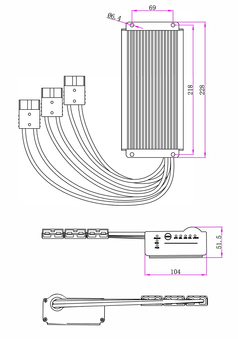 စက်မှုပုံများ: (228x104x51.5mm)
