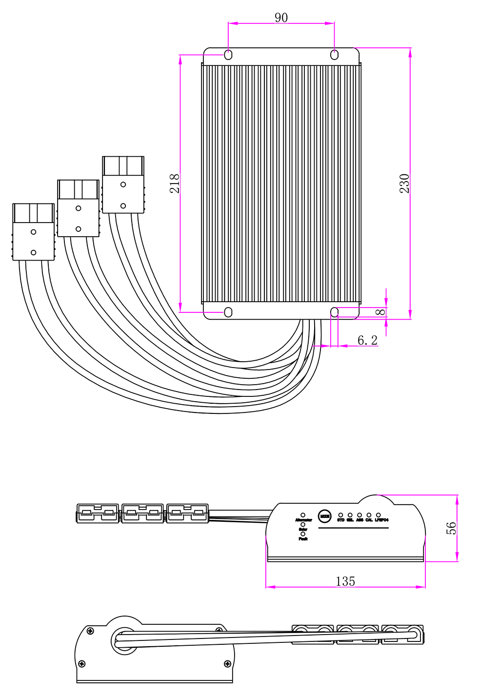 port type ခန့်မှန်းခြေအားဖြင့် 30 စင်တီမီတာ၏ဝါယာကြိုးအရှည်နှင့်အတူ 50a Anderson interface ကို * 3